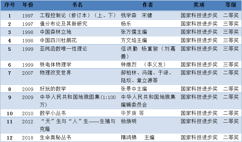 表 科学出版社荣获国家科技进步奖作品
